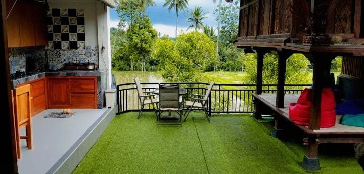 Veranda with a rice-field view